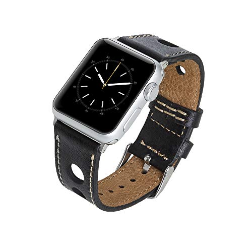 ebay Venito Taranto Handmade Premium Leather Watch Band Compatible with the Newest Apple Watch iwatch Series 6 as well as Series 1, 2, 3, 4, 5, 6, 7, SE (Rustic Black w/ Silver Stainless Steel Hardware, 42mm-44mm)