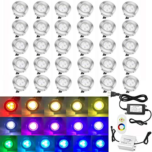 Consumer Reviews QACA Low Voltage LED Deck Lighting Kit Stainless Steel 0.2W~0.5W Waterproof Outdoor Yard Garden Decoration Lamps Landscape Pathway Patio Step Stairs RGB LED In-ground Lights, Pack of 30